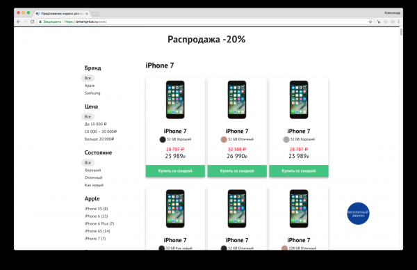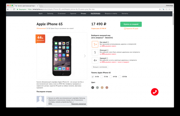 На фоне стоимости новых iPhone цены в SmartPrice выглядят неприлично низкими, тем более что сейчас сервис устраивает распродажу, в рамках которой купить желаемый смартфон можно с дополнительной скидкой (до 20 %). Зачем переплачивать 30 % цены за царапины, которые появятся на смартфоне за одну неделю использования? Взять тот же iPhone 7 с 32 ГБ встроенной памяти: всего за 23 989 рублей можно купить устройство в хорошем состоянии, а доплатив еще около 3 000 рублей, получите такой же iPhone, но уже в отличном состоянии.