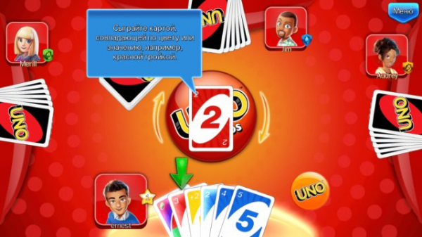 Принцип игры очень простой. Вы садитесь за стол со своими друзьями или другими игроками и получаете карты на руки. Начинается игра, в которой каждый по очереди делает свой ход согласно правилам игры в UNO, которые имеют мало общего с другими карточными играми. Если вы вдруг ни разу не играли, UNO ™ & Friends готова обучить вас перед первой игрой.