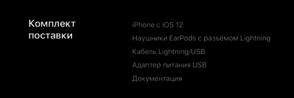 В Сети неоднократно появлялись слухи, что новые iPhone будут оснащаться улучшенным блоком питания, что позволит использовать быструю зарядку «из коробки». К сожалению, этого не произошло. Комплект поставки никак не изменился по сравнению с прошлым годом, за исключением исчезновения адаптера 3.5 мм.
