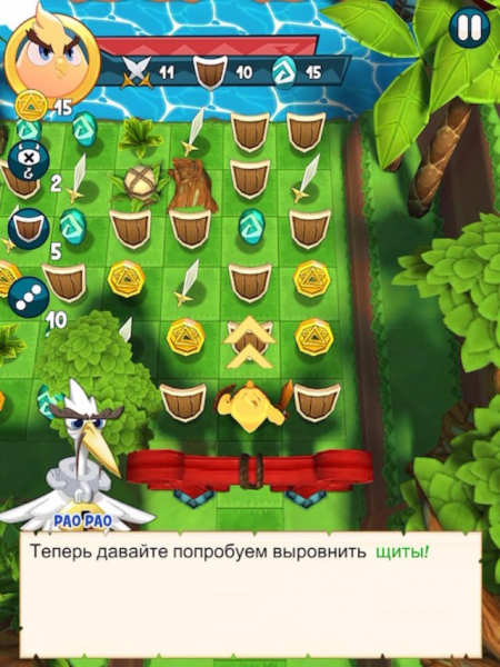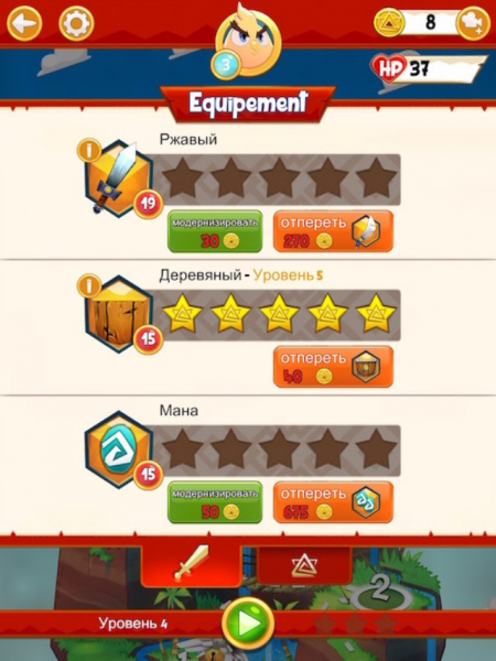 То есть в Mighty Match нам, как и во всех других играх, необходимо объединять несколько одинаковых фигур: здесь это щиты, мечи, монеты, энергетические камни и так далее. Объединяя и убирая их с игрового поля, мы будем повышать боевые качества нашего персонажа, а они нам нужны для сражения с вражескими юнитами. Последние, к слову, при достаточном игровом навыке также могут быть убраны с игрового поля при помощи объединения — это убережет ваше здоровье и подарит вам больше очков.