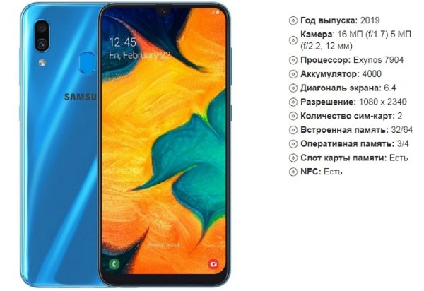 На втором месте — Samsung Galaxy A30. Его показатель 8 часов 43 минуты, что меньше чем улидера на обидные 2 минуты. Galaxy A30 можно по праву считать красавцем. Тонкий, прочный с безрамочным Super AMOLED дисплеем, который почти не портит вырез под камеру. Отлично передает картинку. В одном из двух модулей основной камеры есть сверхширокоугольный объектив на 123 градуса. ИИ справляется с распознаванием 19 разных типов сюжетов и оптимизирует настройки, чтобы на выходе получились снимки максимально высоко качества. Смартфон поддерживает почти 80% популярных игр, но некоторые пойдут только у резанном виде. Есть быстрая зарядка, которая реанимирует любимца за 1 час 15 мин, так и аккумулятор не маленький.