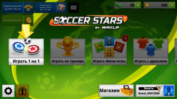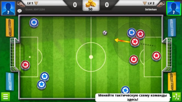 Если времени и желания для ввода паролей нет, можно войти в режиме гостя. Этого для понимания идеи Soccer Stars будет вполне достаточно.
