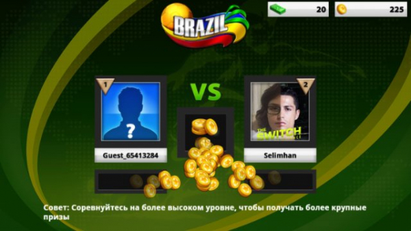 Через несколько мгновений приложение уведомит о вашей готовности к бою и тут же подберёт подходящего соперника. Правила сражений просты. Во-первых, забивать первым касанием нельзя — это будет расценено как нарушение. Во-вторых, игра длится до двух забитых голов. Победителю достанется слава и деньги, поставленные на кон.