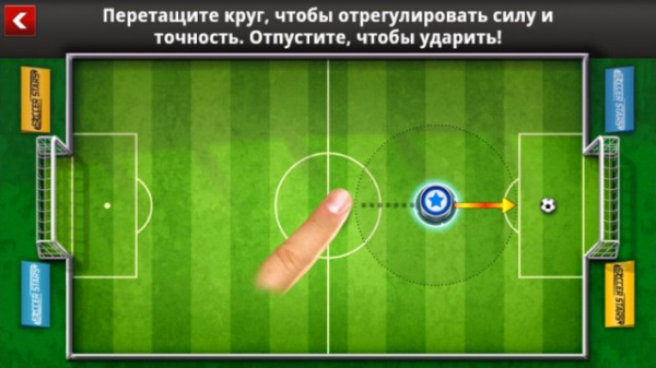 Перед переходом к матчам с реальными соперниками нас будет ждать режим обучения. Впрочем, назвать его таким можно с натяжкой. Дело в том, что для удара в игре следует перетащить круг, таким образом отрегулировав силу и мощность. Вслед за этим палец нужно отпустить. На этом вступление заканчивается.